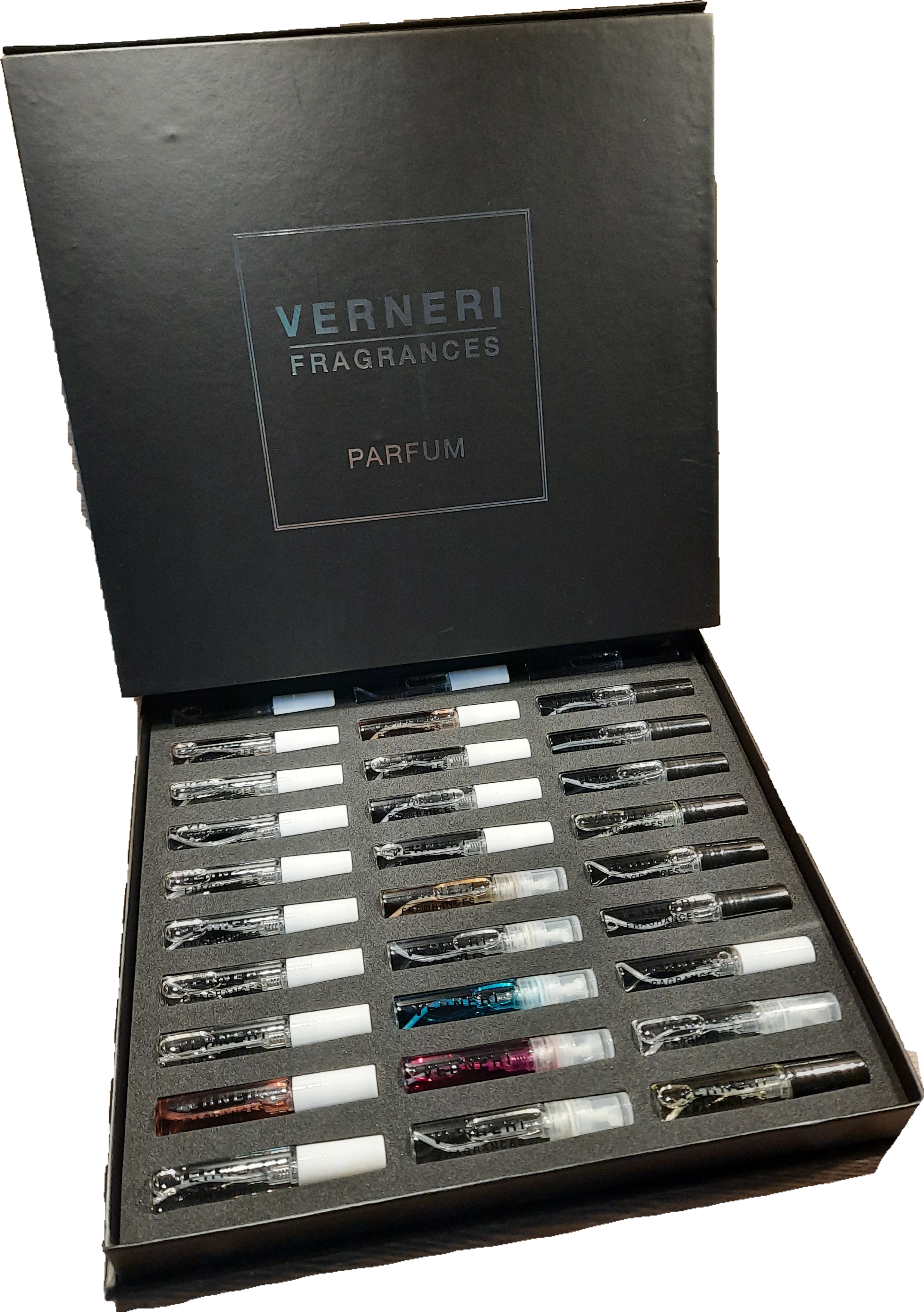 Bei Verneri® haben Sie die Möglichkeit, sich dreißig Probeflakons zu je 5ml edlem Parfum aus unserem umfangreichen Sortiment auszuwählen und in Ruhe zu Hause zu testen.